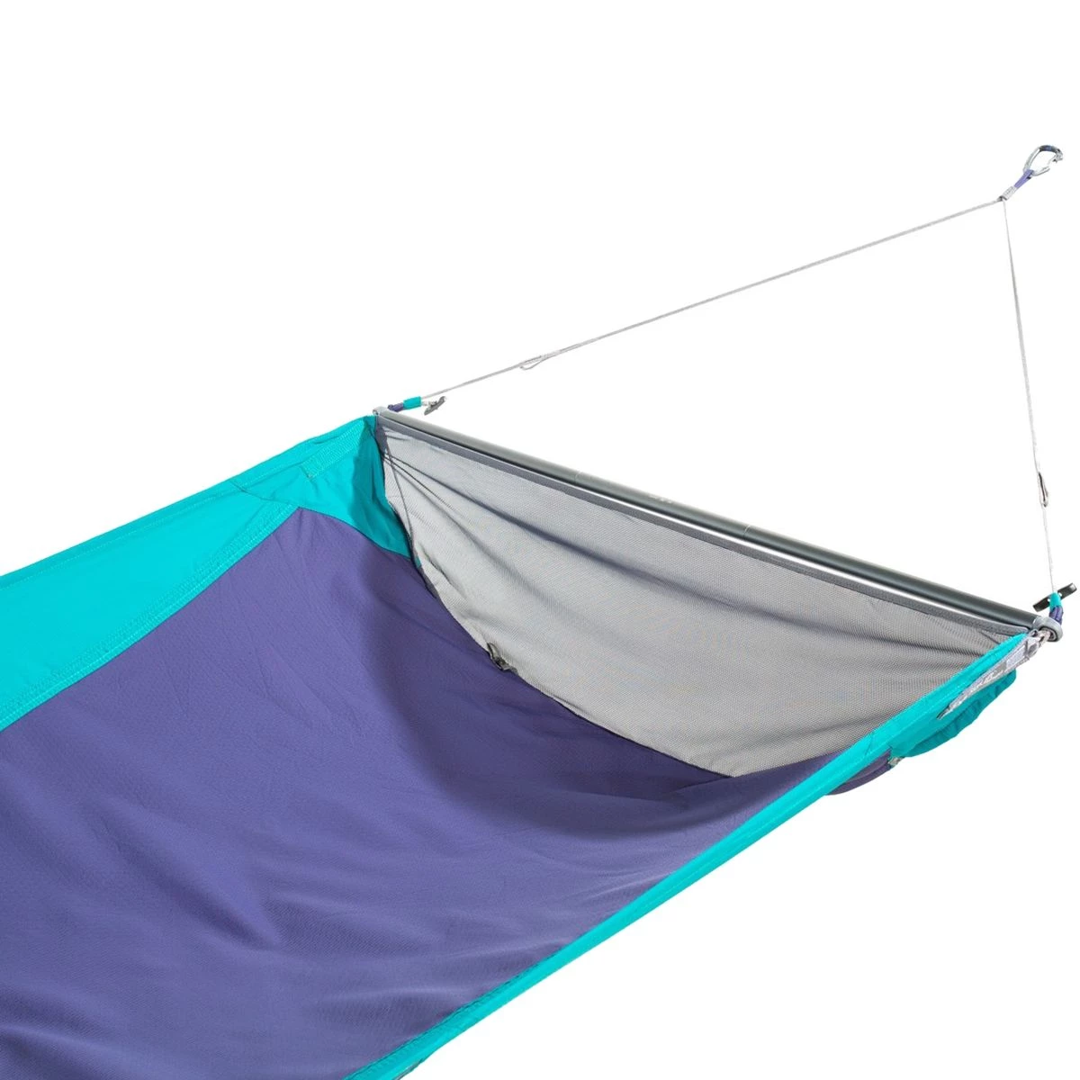 Bring comfort to the campsite like never before with the help of the Eagles Nest Outfitters SkyLoft Hammock. Crafted with a light, breathable NewWave Nylon fabric, this innovative hammock is headlined by its dual-function design, switching between Relax mode and Sleep mode via a toggle system that matches your relaxation style to the time of day. It packs down easily into its own stuff sack, which can also double as an integrated hammock pillow, while the multiple stretch pockets keep your phone, headlamps, and book close at hand. Eagles Nest Outfitters strives to create this hammock as responsibly as possible by using every bit of fabric available; because of this, every ENO hammock will have slightly different color patterns.