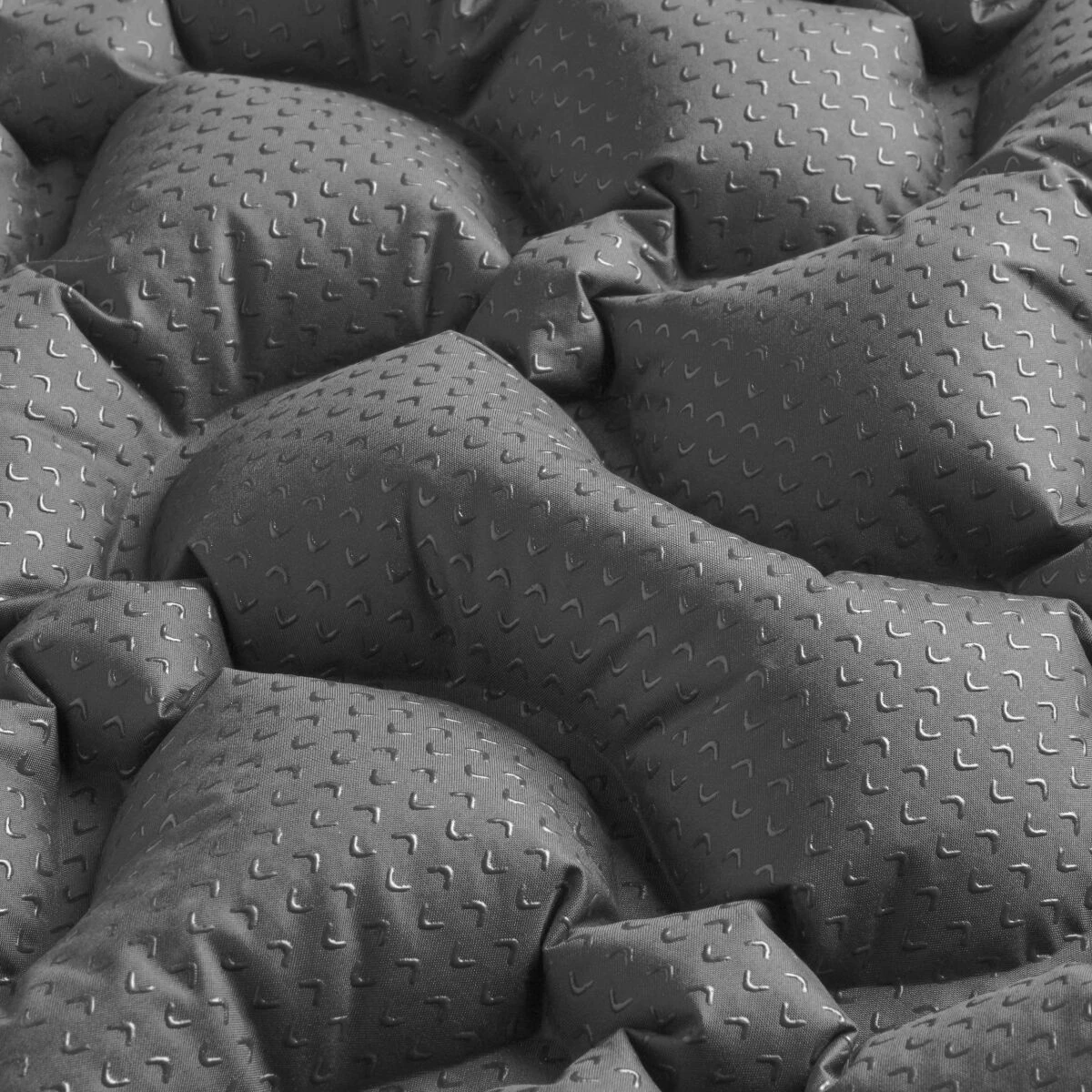 The Kompact Camp Pad Basic delivers a plush bed in a minimalist design. The carry bag doubles as an inflation sack, so we don’t have to worry about messing around with a pump. As we shift and turn in our sleep, the textured bottom keeps this pad from slipping away.