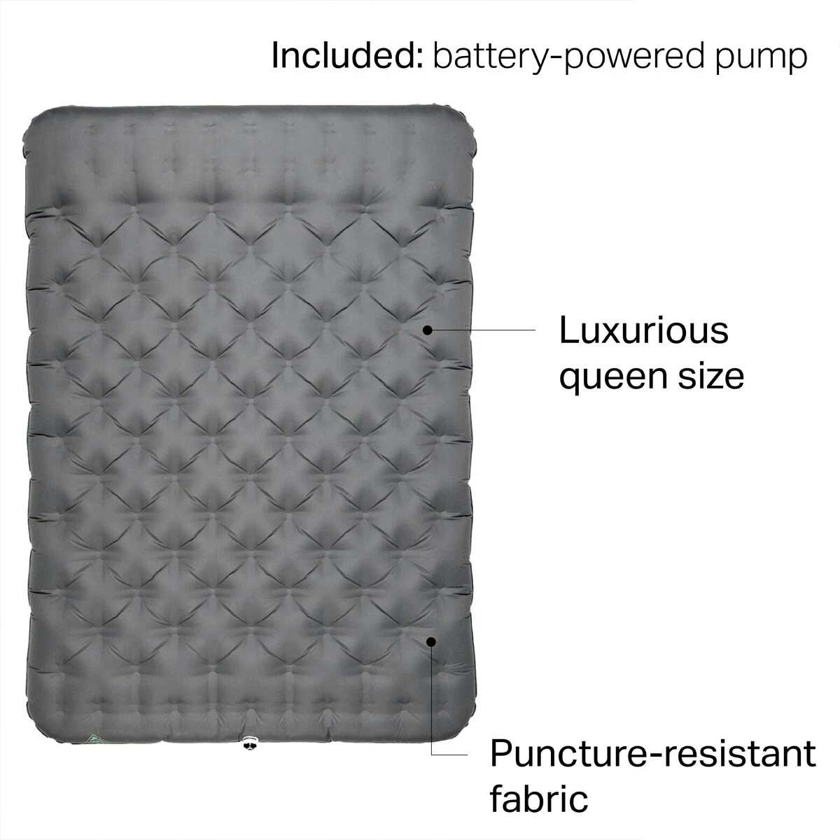 - Queen-sized sleeping pad for one or two luxuriously comfy campers