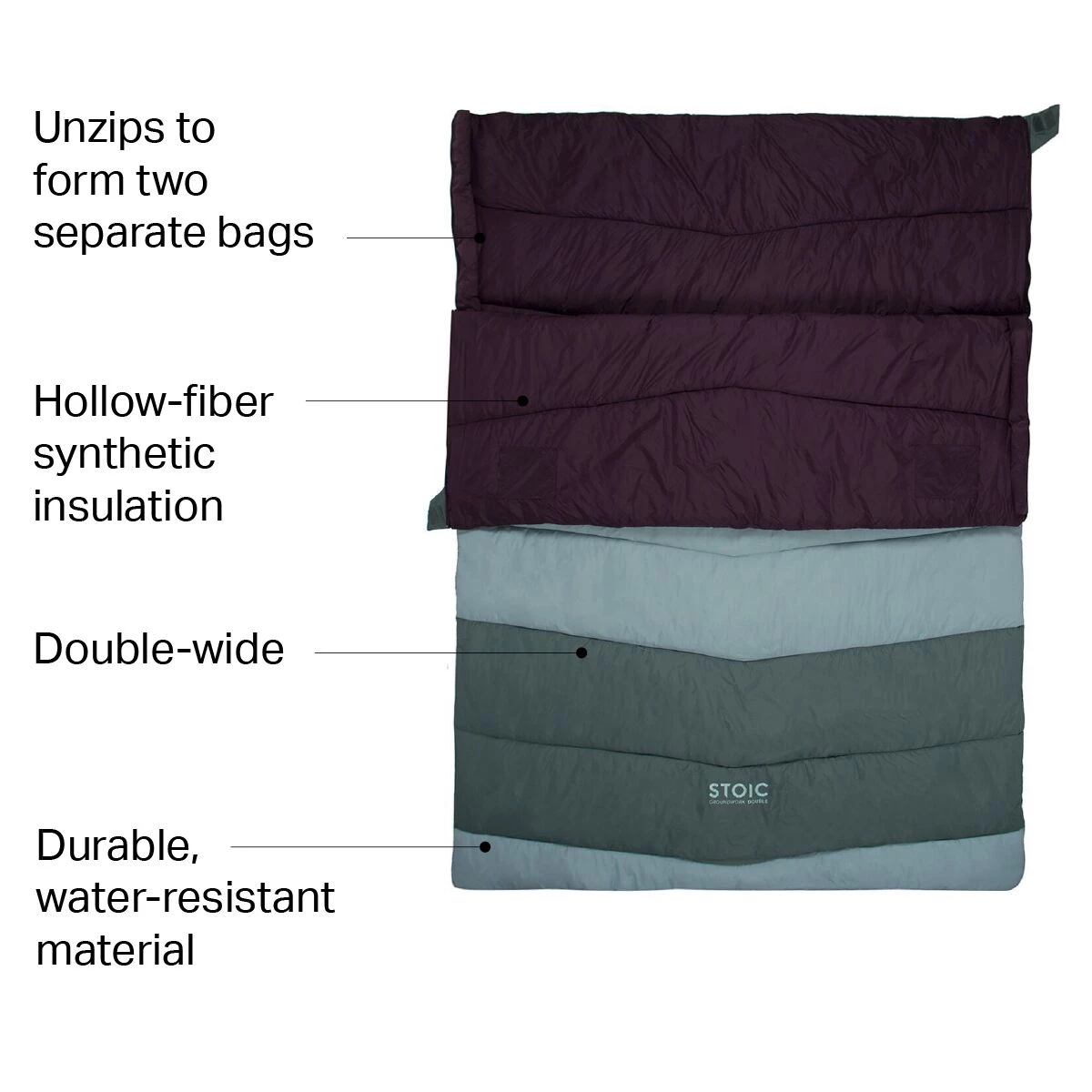 We made the Stoic Groundwork Double Sleeping Bag because it’s challenging enough to find a sleeping bag for two, and it’s even harder to find a bag that feels comfy in colder and warmer temperatures. This double-wide sleeping bag offers soft warmth even when the forecast calls for gray skies and morning fog. You’re welcome to cozy up with your partner, or unzip the bag into separate parts in case someone heads out on a solo mission.