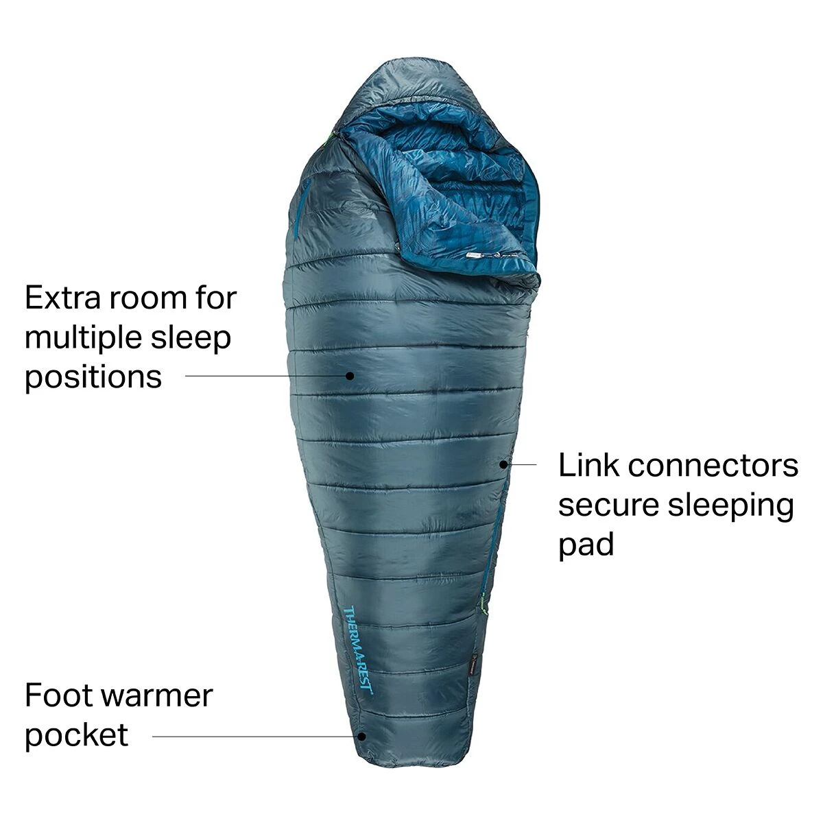 - Synergry Link connectors secure the bag to your sleeping pad