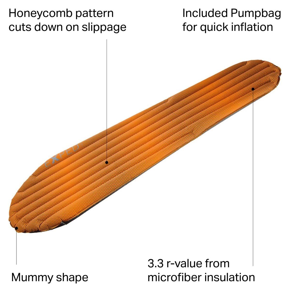 Tough 20D fabric keeps the weight to a minimum, without sacrificing durability, while the anti-slip GripSkin coating prevents you from sliding around on your pad in the middle of the night. The included Schnozzel Pumpbag ensures that you’re able to inflate the mat with ease, and is designed so you don’t have to waste your breath huffing and puffing into your mat. As a result, the pump prevents humidity from affecting the effectiveness of the insulation.