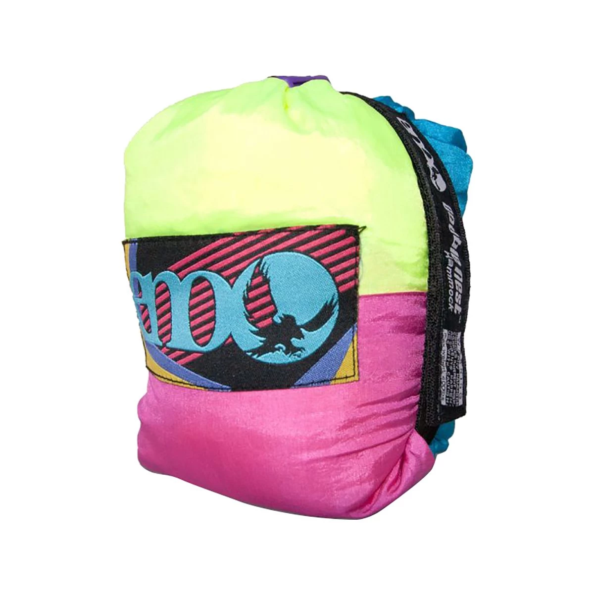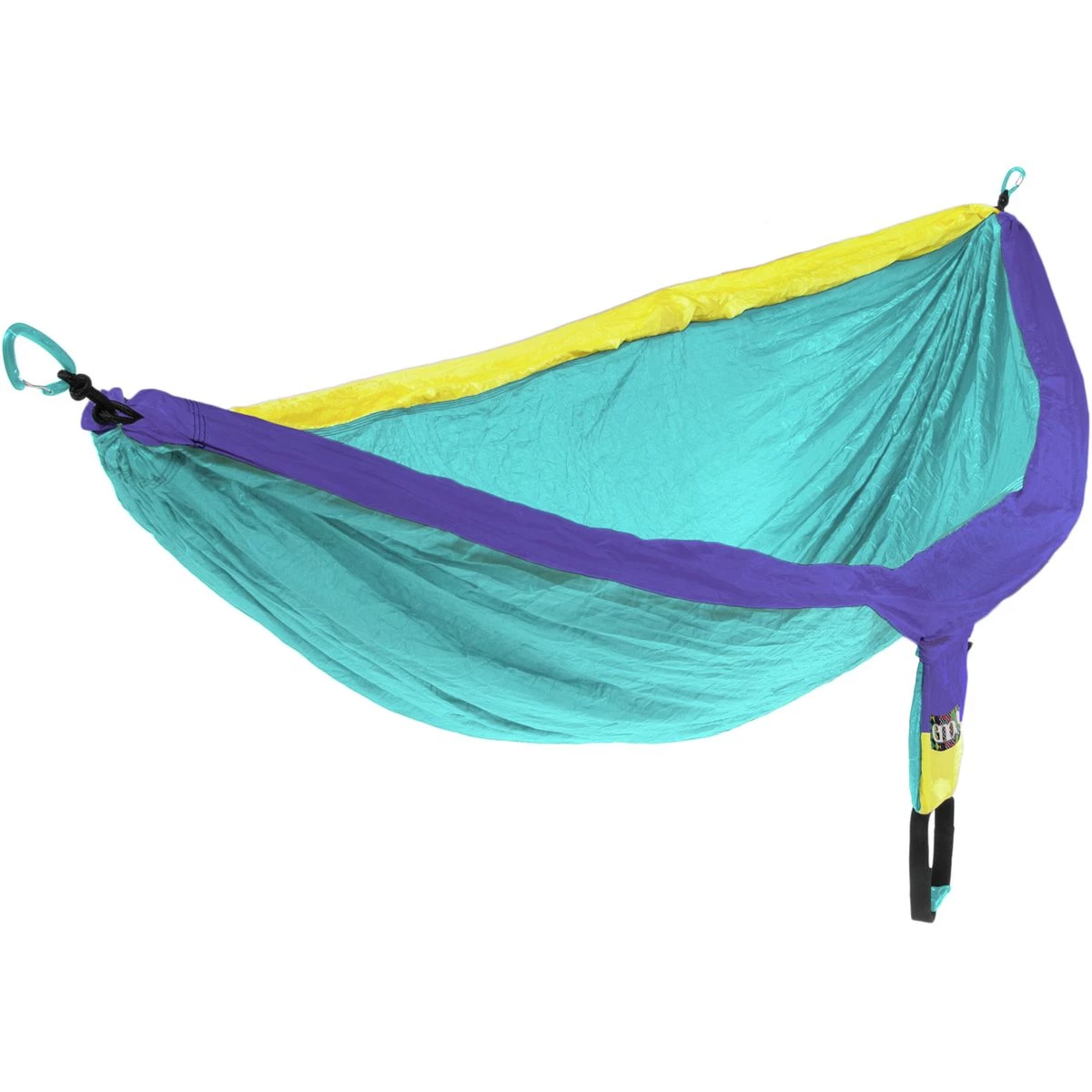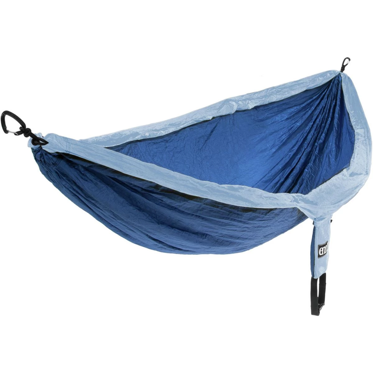 With room for two, the Eagles Nest Outfitters DoubleNest Hammock is your own portable luxury lounger for the backyard, the beach, or the backcountry. The highly packable design stuffs down to the size of a softball, and the breathable woven nylon fabric supports up to 400 pounds. Tough carabiner attachments let you clip on to your anchor of choice, for a comfortable nap or for spending the night suspended. Eagles Nest Outfitters strives to create this hammock as responsibly as possible by using every bit of fabric available; because of this, every ENO hammock will have slightly different color patterns.