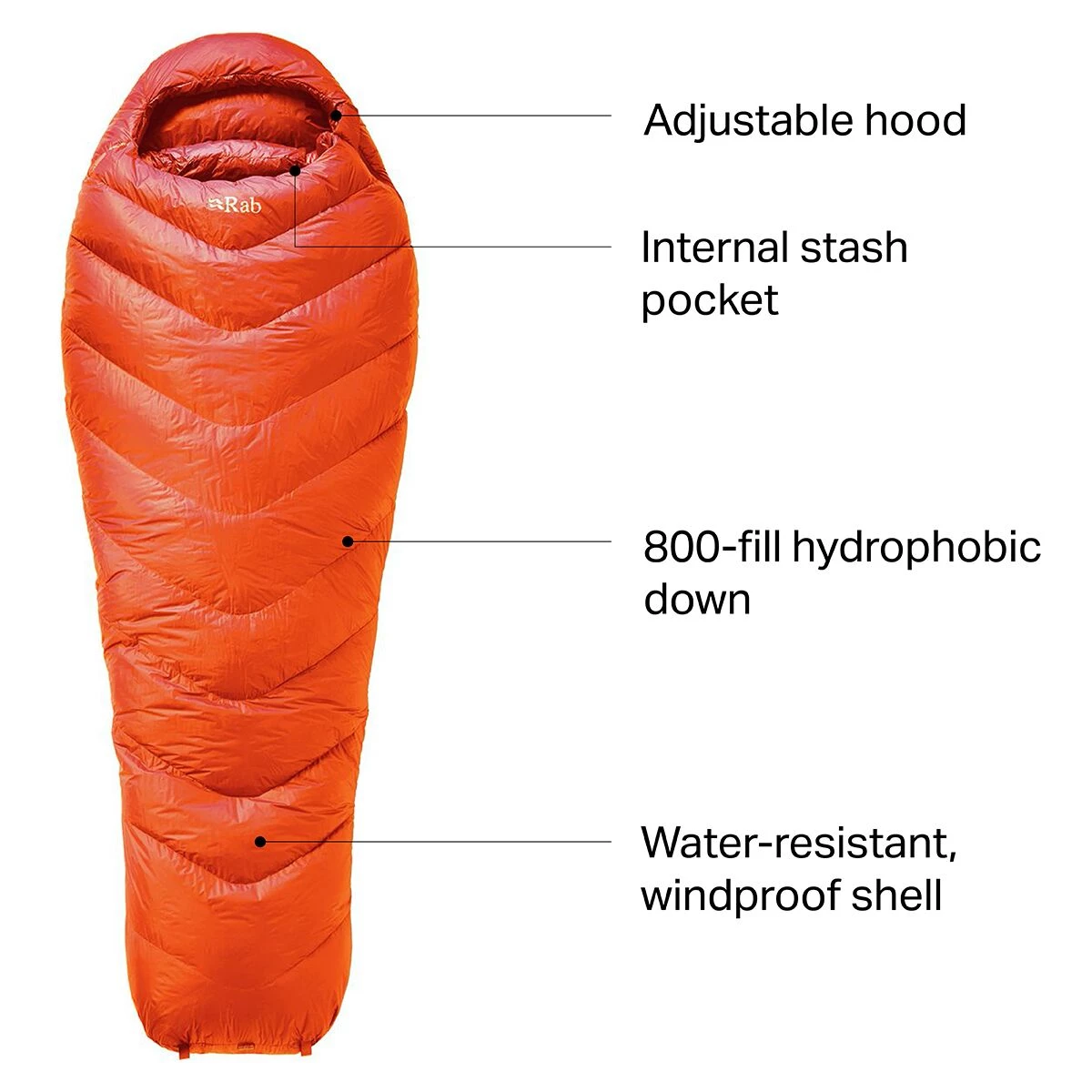 - 800-fill down insulation is light, lofty, and rated to 34F